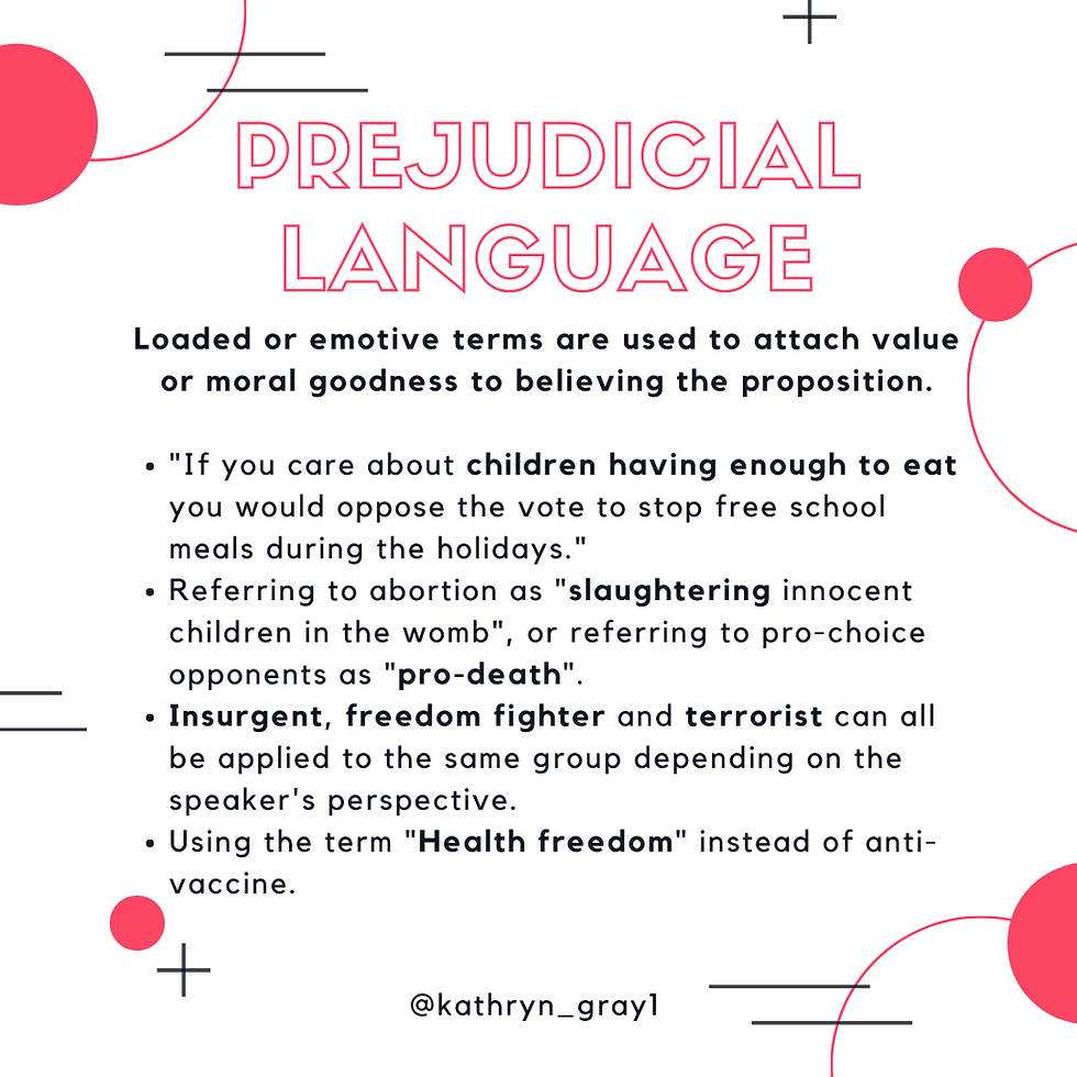 Loaded or emotive terms are used to attach value or moral goodness to believing the proposition.